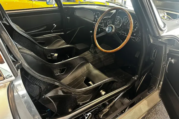 At the heart of the DB4GT is the Tadek Marek-designed straight-six cylinder engine with two spark plugs per cylinder, transmitting its 340bhp to the rear wheels via four-speed manual transmission and limited-slip differential.