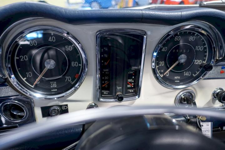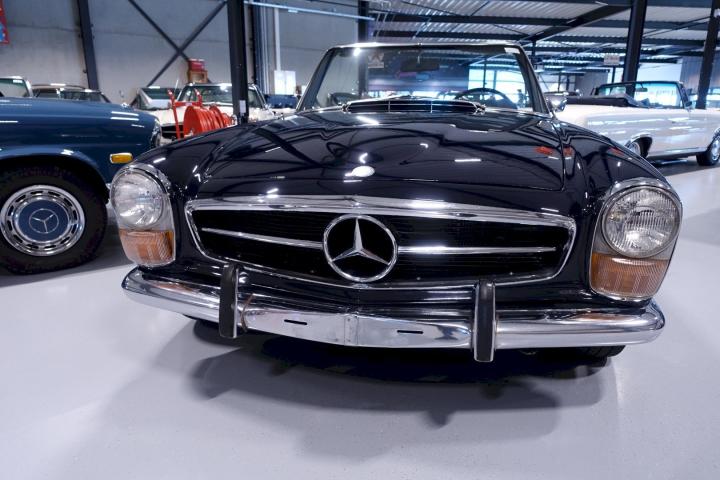 Matching nummers 280SL Pagode in automatic Versie, voorzien van hardtop en soft-top, auto met nog het originele plaatwerk en voorzien van de puntlassen af fabriek en de Vtjes bij de koplampen en ook nog de originele eerste kofferbodem, heeft slechts 84.784 mijlen in haar 52 jarig ouderdom gereden, uitgerust met de achteras overbrenging 3.92, stuurwiel en dashboard hebben wat haarscheurtjes.