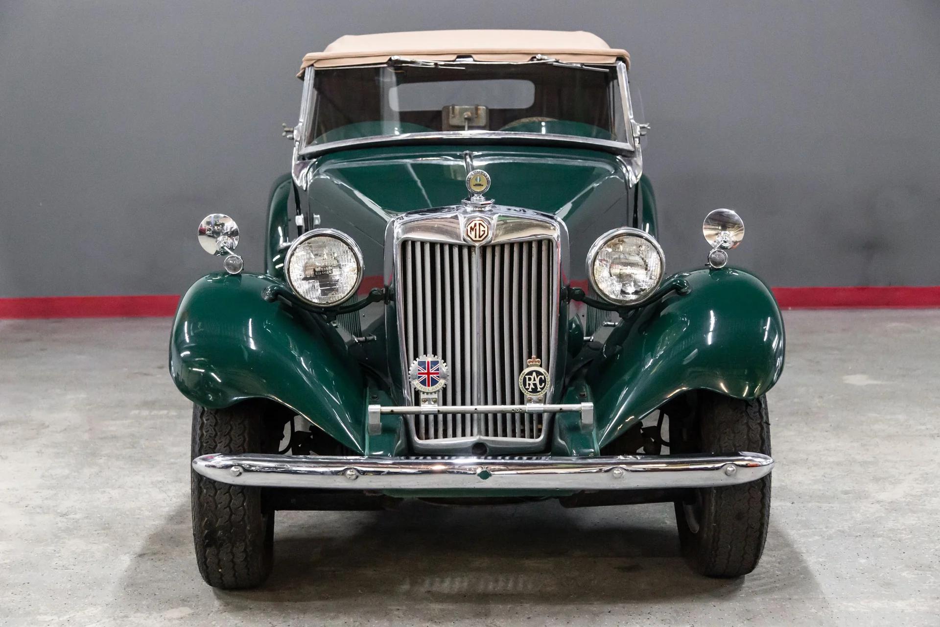 This attractive British Racing Green MG TD Roadster is the perfect cruising example. This MG has straight, solid fender wings, nice body gaps, and straight panels. The car is solid mechanically, with a quick and easy start each time. The transmission has recently been rebuilt, is quiet, and operates as designed. The paint and chrome on the car are good, with a nice interior and tonneau cover. The vehicle has a brand-new soft top, a new windshield, and newly installed seatbelts. The car has a nice drive with recent brake work and a tight front end.