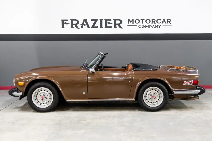 This very straight and solid ICONIC TR6 hails from Arizona .The car has no rust or rust history ,all the body panel gaps are factory straight and car shows no signs of accident or rust history. The soft top as well as seat cushions are new .Tires are deep in tread. Engine is tight ,tidy, strong with good compression. The drive is tight and car pulls well. Suspension is tight and car tracks nicely down the road. Paint is in nice condition as is all bright work. Dash is void of cracks as is the dash cap and knee pads. Carpets and seats are in good order.