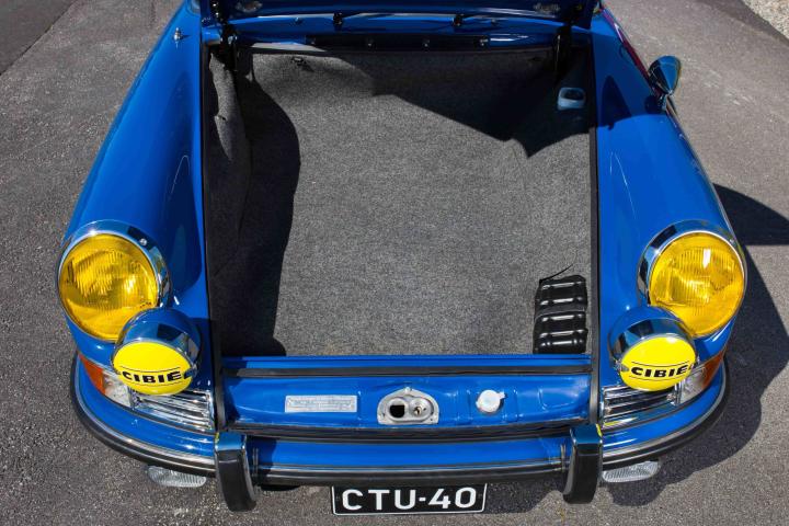 This car is fully matching numbers, short wheel base 911 S confirmed by Porsche Certificate of Authenticity and copy of the original Kardex. The car has its original engine and its 5 speed gearbox. The car has its original Ossi Blue color and still largely original panels and partly original very rare ”Elefant skin” interior. This special interior option was offered only in the model year 1968. The driver side Talbot Junior mirror has been installed very likely at delivery. The car has also got early in its life the period typical Cibie Pallas lamps. The car has been manufactured in October 1967 and then sold by French Porsche importer Sonauto on February 1968 to customer in Paris. The full history of the car is well documented. The last French owner had the car for 21 years, from 1991 to 2012 as his daily driver.