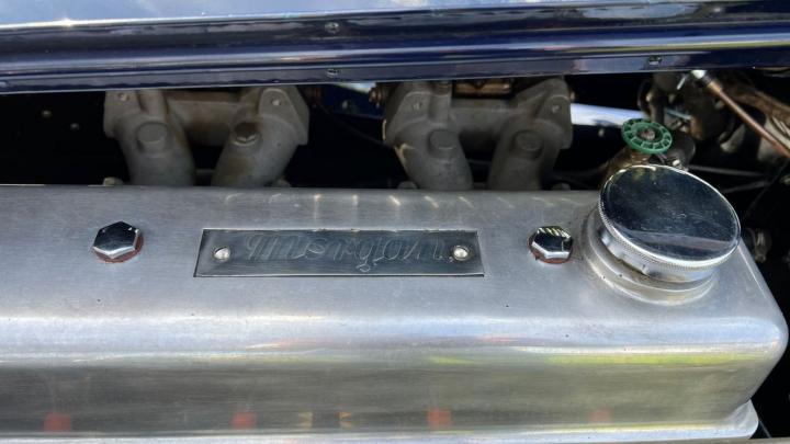 Deze Morgan heeft nog wel zijn originele motor (matching-numbers) en er staat nu 90.000 miles op de teller.