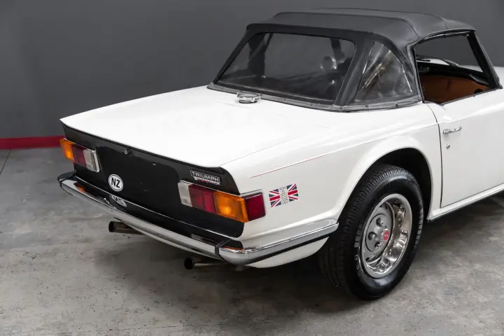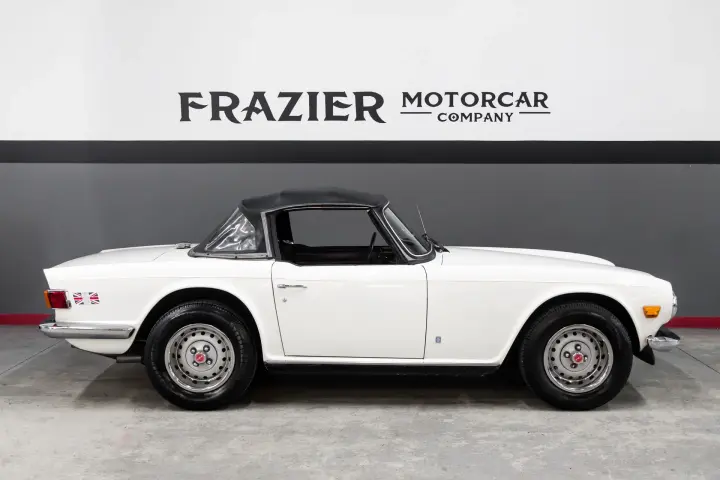 This honest SOLID Overdrive TR6 is as straight as it reflects in the pictures. Note the perfect factory panel gaps with all gaps vertically and horizontally are even and straight. The body seams are clean and correct. The doors are flush against the fenders and quarter panels. The panels are straight. Soft top is in good order. The tires are deep in tread mounted to original wheels with good finish on all four wheels and center caps. Paint is in good order .Interior seats are full, not broken down ,dash cap is good with no cracking or warping. Gauges are crisp, clean and work as designed.