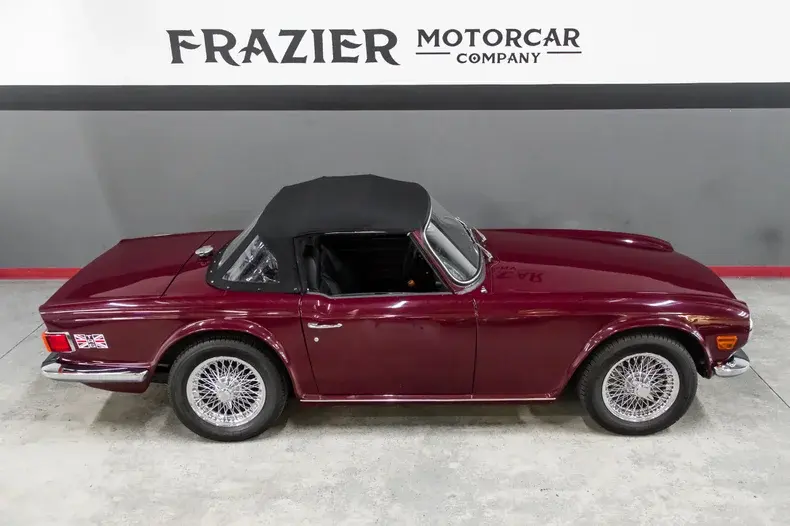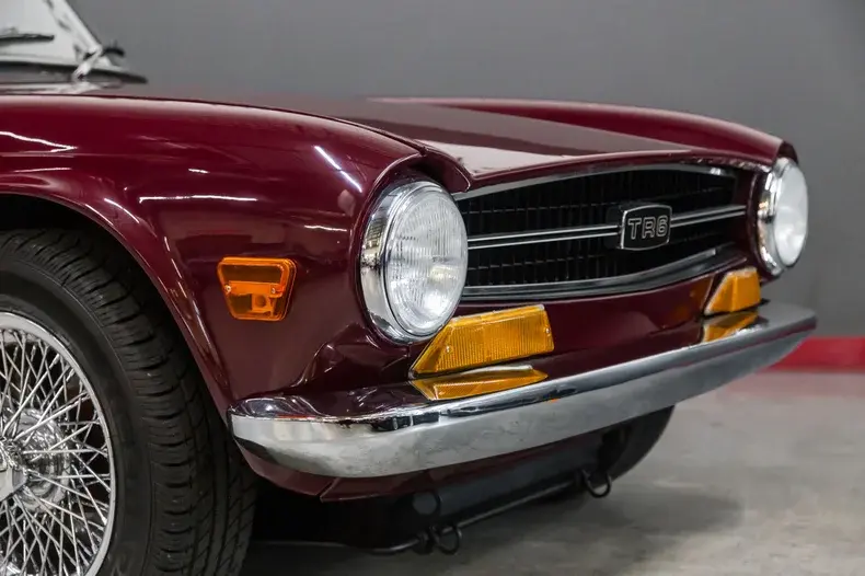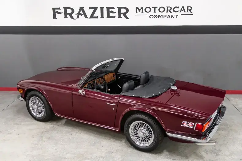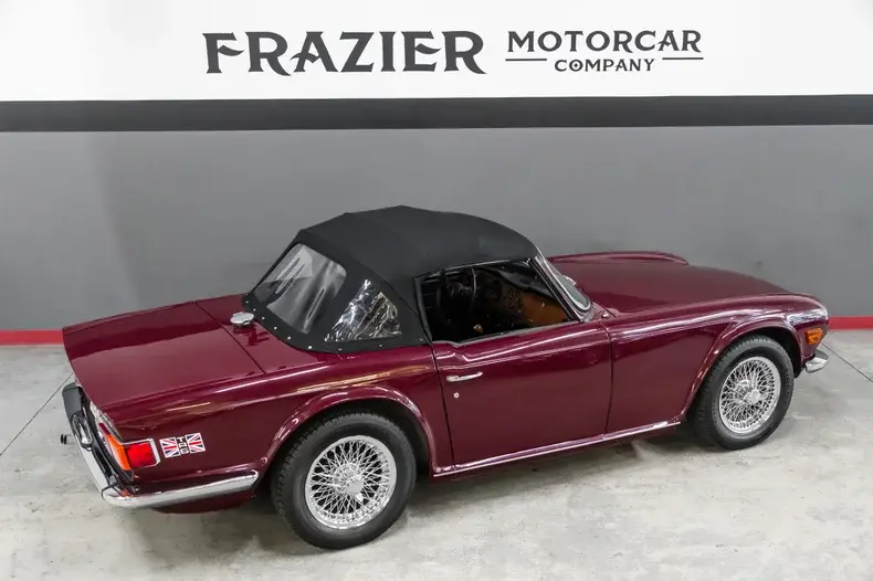 This absolutely gorgeous TR6 was owned by the same California based family for 52 years ! The car is a typical mid California car with absolutely no rust and has never been victim to an automotive accident. The body panel gaps are correct and even. The body panels are straight. The gorgeous cloth soft top sets the car off. The soft cloth top married to the beautiful paint ,brilliant chrome as well as the chrome wheels make for a very attractive combination.