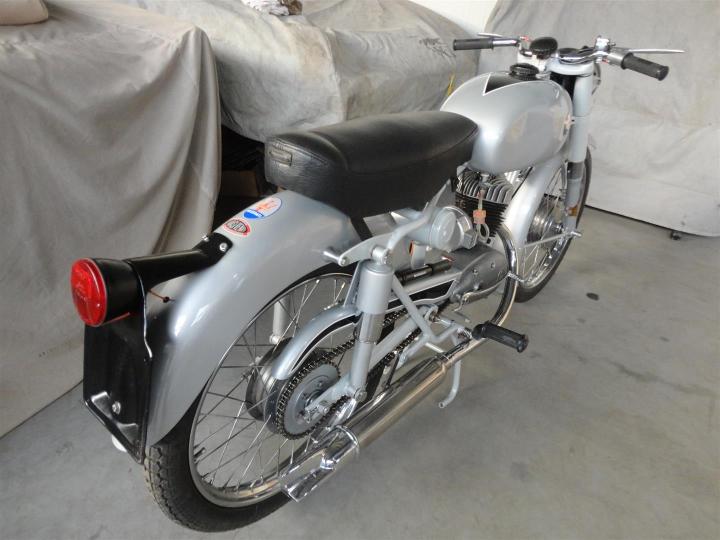 Perfect 100% gerestaureerd. Geheel originele 1958 Maserati 125 CC. Een prachtige, ZEER zeldzame Maserati motor. Slechts een klein aantal geproduceerd. Grote keus in motor- en bromfietsen in de Stolze Collectie!