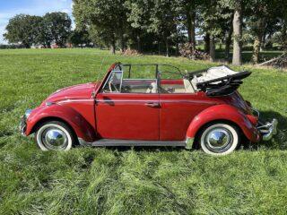 Prachtig gerestaureerde Kever Cabriolet uit 1965 in de kleur Robin Red, de auto is body off gerestaureerd, heeft nieuwe remmen voor en achter, motor 1600cc 50pk, stoelen opnieuw bekleed, alles is prachtig gerestaureerd tijdens de Kever restauratie Koetswerk in kleur gespoten inclusief de binnenkant van wielkasten zodat je snel kunt zien hoe goed deze Kever Cabriolet is gerestaureerd met originele white wall banden, zelfs het reservewiel.