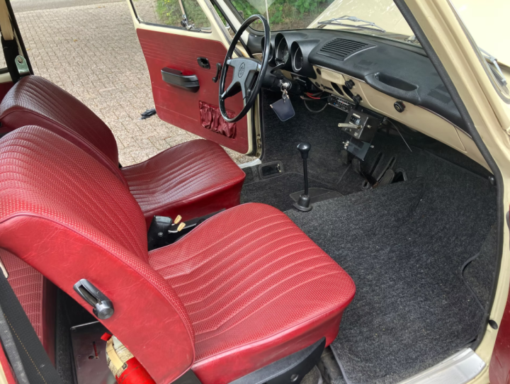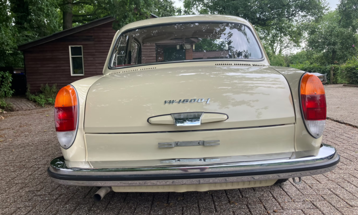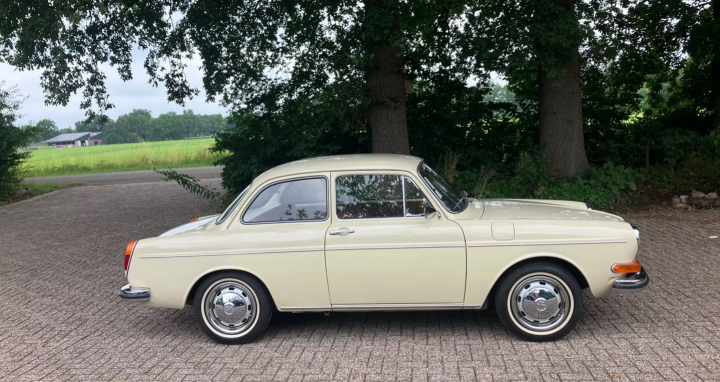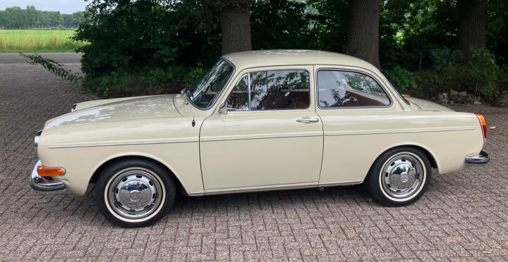 Prachtige, ongerestaureerde VW 1600 L Ponton (Type 3) van de tweede eigenaar met slechts 40.000 km. De auto is roestvrij, ongelast, voor 80% in de originele lak en volledig origineel. Oude TÜV rapporten bevestigen de lage kilometerstand. Het originele rode interieur harmonieert perfect met de prachtige Kansas Beige exterieurkleur. De lak en het chroom presenteren zich als een auto van een jaar oud. De Ponton heeft Duitse papieren met een nieuwe APK geldig tot juli 2027. De originele Fahrzeugbrief is aanwezig, evenals een oude brandblusser uit 1972 en een tripmaster.