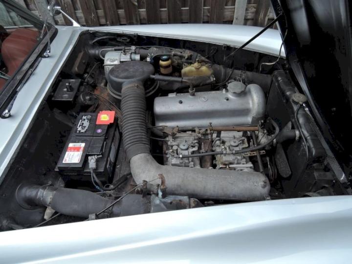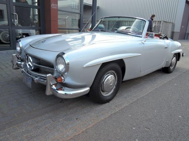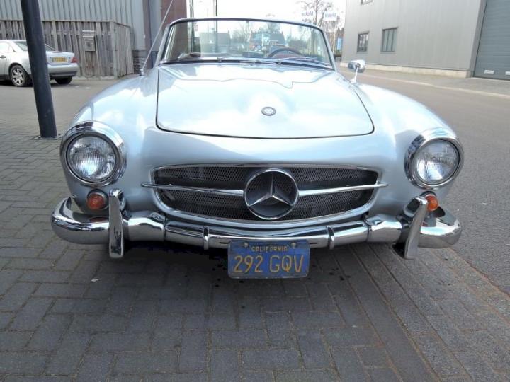 Betreft een redelijk exemplaar deze late versie 190SL, een auto met een leuk uiterlijk, het lakwerk van origine donkergrijs 190G is in het verleden gewijzigd in de kleur zilver metallic 180G en is in een redelijk conditie zo ook het chroomwerk is netjes en past goed, de voorruit omranding mag vroeg of laat verchroomd worden, het rood leder interieur met passend tapijt is in een goede staat, softtop is in een goede conditie, qua body optisch goed echter o.a de vloerbodem-delen hebben aandacht nodig, nieuwe bodem delen zijn reeds aanwezig en gaan mee met de koop, technisch en motorisch loopt en rijdt deze 190SL cabriolet naar behoren, de kwetsbare Solex carburateurs zijn in het verleden vervangen in Mikuni met behoud van luchtfilter en aanzuigbuis, het motor onder blok is in het verleden vervangen door de juiste ruil motor af fabriek, het bovengedeelte met name de cilinderkop is nog origineel.