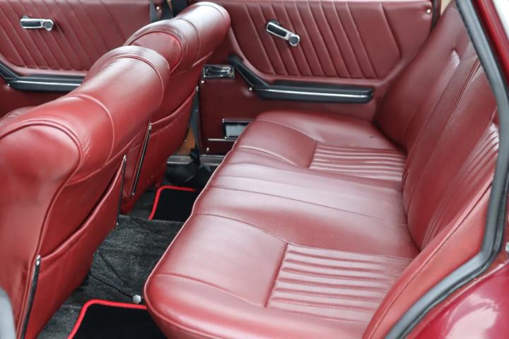 The maroon leather interior is also a true work of art and is in very good condition. The interior features attractive gauges and a wooden dashboard that is still in very good condition. The car is driven by the attractive wooden 3-spoke steering wheel. The interior has normal signs of wear and is in overall good condition. All gauges are working. The leather upholstery is free of tears. For safety and comfort, the car offers heating and seat belts. The boot is surprisingly spacious and is also in good condition. Neatly covered under the boot mat is the spare wheel.