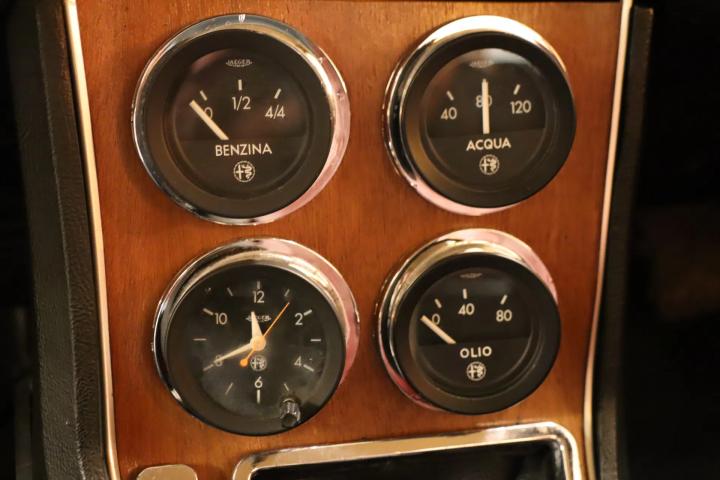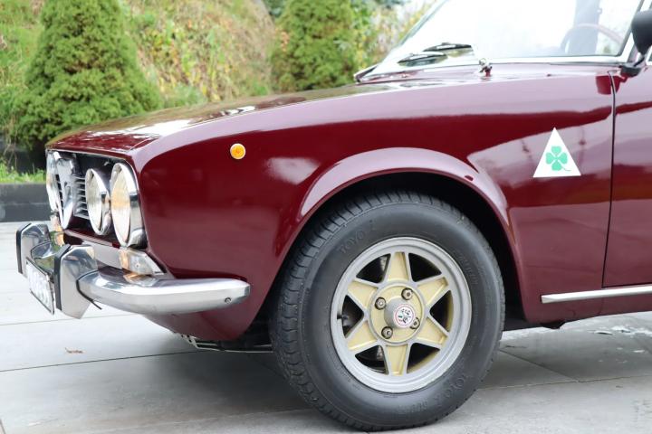 The Berlina has been carefully and passionately maintained, mostly by Alfa Romeo specialists. In 2022, the rear section of the exhaust was replaced with stainless steel. The front and middle sections of the exhaust were also renewed. All four shock absorbers were replaced with Koni units. The cardan shaft was also overhauled and the bearings and seals were replaced. The engine compartment looks neat and dry. The four Toyo tyres all round still have plenty of tread. The 4-cylinder engine has a capacity of 1779 cc, delivers 116 hp and has twin carburettors. The 5-speed manual gearbox, together with rear-wheel drive, ensures the ultimate driving experience. The car starts, drives and shifts gears well.