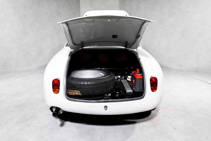 All aluminium bodywork repairs were entrusted to a specialist aluminium coach-builder in Switzerland, ensuring the Zagato panels were restored using correct period techniques. The paintwork was completed strictly in accordance with original Zagato specifications, using precise colour samples supplied by Lechler, Zagato’s former paint manufacturer, resulting in a finish that is both visually striking and historically faithful.