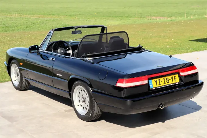 Deze Alfa Romeo betreft een exemplaar uit de laatste serie van de iconische Spider: een model dat in de basis al werd geproduceerd sinds de jaren "50. Dit exemplaar is nieuw geleverd door de Alfa Romeo dealer in Den Haag op 1 mei 1991. De auto is altijd in bezit gebleven van Nederlandse eigenaren. Bijzonder is de zeer lage kilometerstand van iets meer dan 35.000 kilometer en de zeer originele staat van de auto. De oorspronkelijke kilometerstand blijkt uit het NAP-tellerrapport van de RDW. Zelfs de softtop is nog origineel, maar verkeert nog vrijwel in nieuwstaat! Dit duidt erop dat de auto slechts voor tour- of vakantieritten is gebruikt. De originele aflever-, service en instructieboekjes zijn nog bij de auto aanwezig. De APK is nog geldig tot 24 januari 2027. Dankzij uitvoerig onderhoud in 2025 bij de Alfa Romeo specialist is de auto helemaal rijklaar voor de volgende eigenaar!